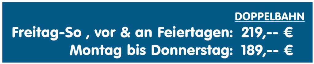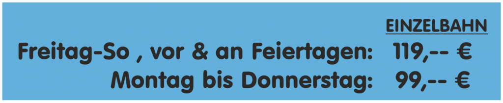 - Ab der 7. Person: +5 Euro pro Person (max. 8 Personen pro Bahn).