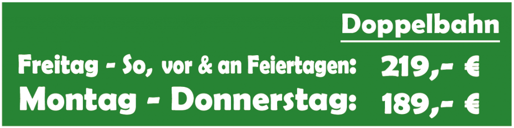 - Ab der 7. Person: +5 Euro pro Person (max. 8 Personen pro Bahn).