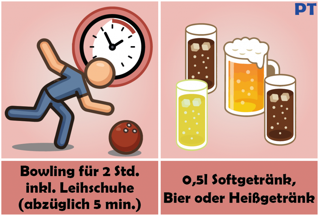 - Das Paket lässt sich auch mit Disco – Bowling kombinieren.